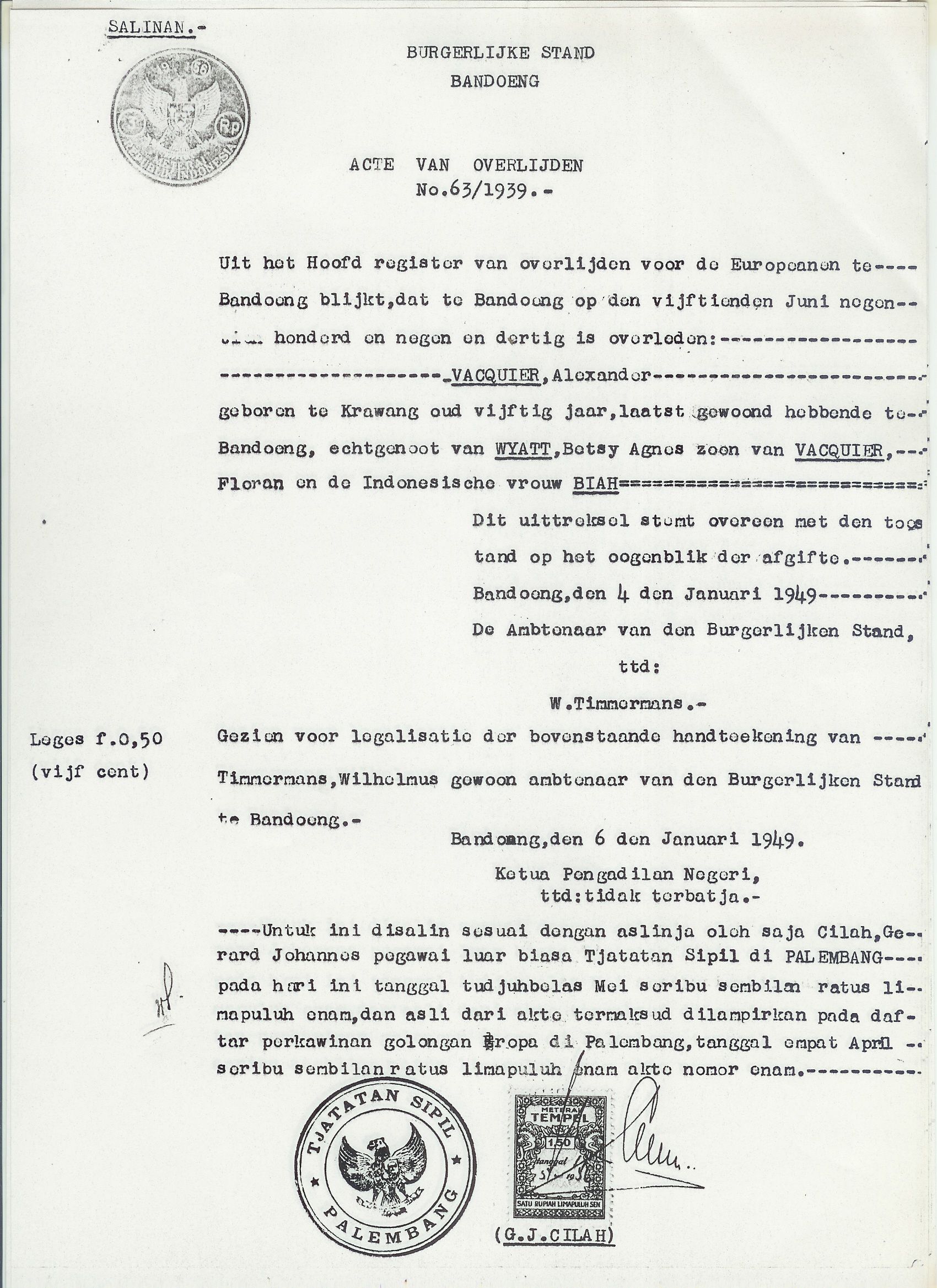 De akte is opgevraagd in Bandoeng op 6 januari 1949.
