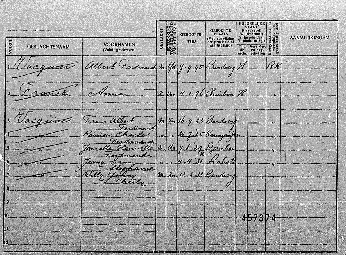 In 1941 woonde Albert Ferdinand nog steeds met zijn gezin a/d Rochussenweg 6 in Bandoeng.