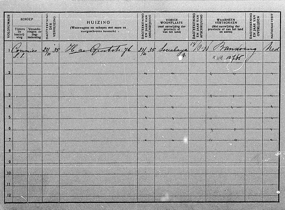 Verhuizing op 23 oktober 1935 van het gezin van Soerabaya naar Bandoeng, nadat de kinderen al geboren waren.