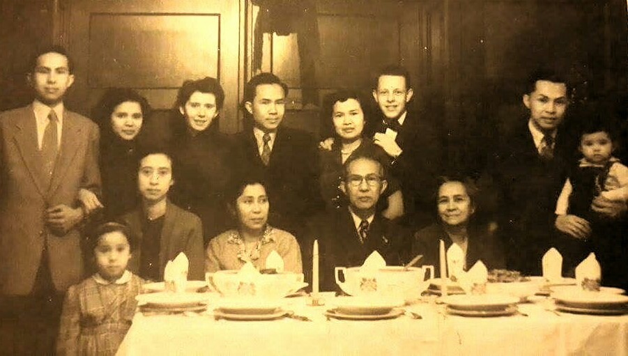 Voor: Yvonne Vacquier met haar moeder Gretha Waldt, tante Corrie (stiefzus van Anna Fransz), Albert Ferdinand Vacquier & Anna Fransz.